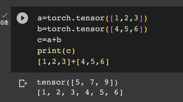 ์๋ ์ฝ๋์์ ํ ์๋ผ๋ฆฌ ๋ํ c๋ ๋ฒกํฐ์ ํฉ์ ์ถ๋ ฅํ๊ณ , ๋ฆฌ์คํธ๋ผ๋ฆฌ์ ํฉ์ ์์๋ผ๋ฆฌ ๋ํด์ง๋๊ฒ ์๋ ๋์ดํ ๊ฒ์ ์ถ๋ ฅํ๋ค.