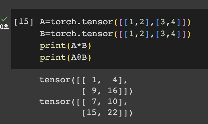 - A@B: ํ๋ ฌ์ ๊ณฑ (์ด๊ฒ ์ง์ง ํ๋ ฌ์ ๊ณฑํ๊ธฐ์ด๋ค.)