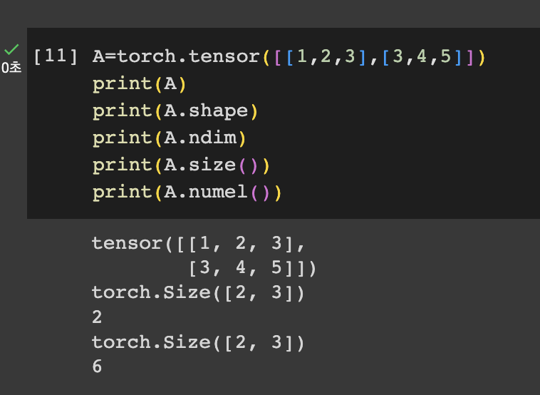 - A.numel(): ์์์ ๊ฐ์ (6๊ฐ)