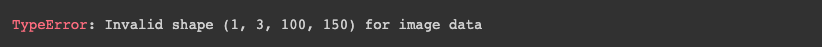"TypeError: Invalid shape (1, 3, 100, 150) for image data"