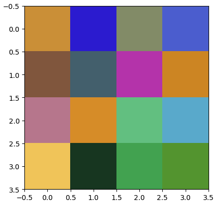 import torch import matplotlib.pyplot as plt x_batch = torch.rand(1, 3, 4, 4) plt.imshow(x_batch[0].permute(1, 2, 0)) plt.show()