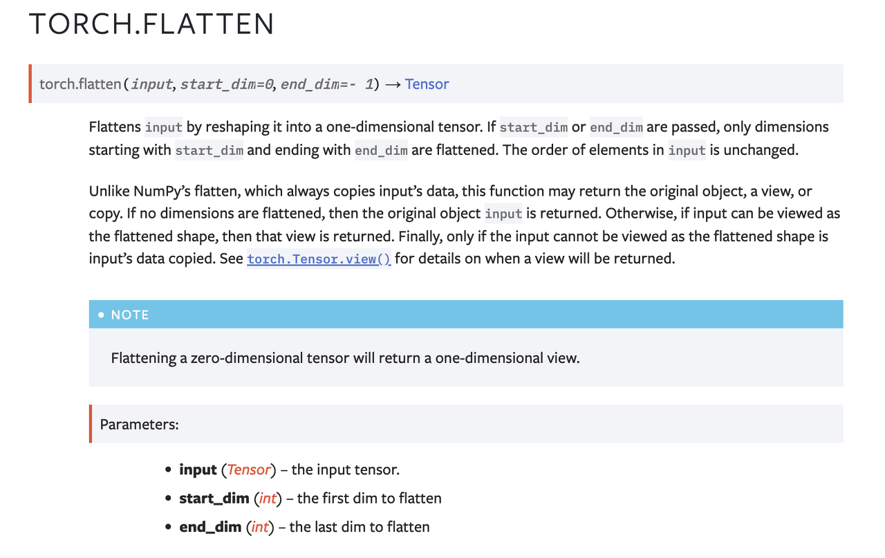 https://pytorch.org/docs/stable/generated/torch.flatten.html 'AI\ML\DL > Pytorch' ์นดํ ๊ณ ๋ฆฌ์ ๋ค๋ฅธ ๊ธ