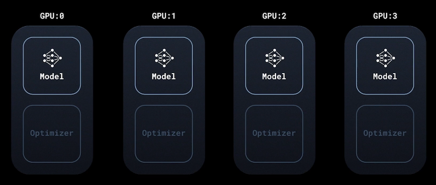 ๋ฐ๋ฉด ๋ถ์ฐ ํ์ต(DDP)๋ ํ์ต ์์ ์ ์ฌ๋ฌ๊ฐ์ GPU๋ก ๋ถ์ฐํ๋ค. ๊ฐ GPU ํ๋ก์ธ์ค๋ ๋ค์๊ณผ ๊ฐ์ด ๋ชจ๋ธ์ ๋ก์ปฌ ๋ณต์ฌ๋ณธ์ ๊ฐ์ง๊ณ ์๋ค.