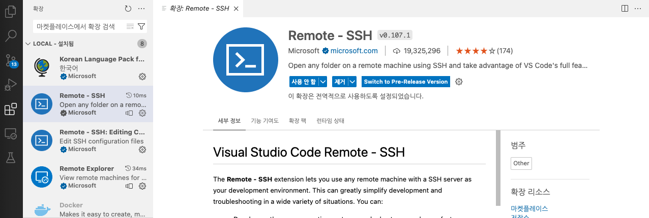 ์ฐ์ ์ ์ผ๋ก ํ ์ผ์ VSCode์ extension ์ผ๋ก "Remote-SSH"๋ฅผ ์ค์นํ๋ ๊ฒ์ด๋ค.
